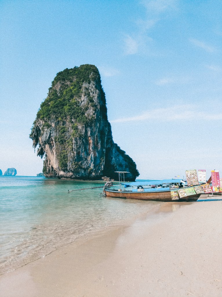 Het meest bekende strand in deze omgeving is toch wel Railay Beach. Vanaf het strand bij Ao Nang pak je een longtailbootje voor 100 Bath (ongeveer 3 euro) naar dit strand.